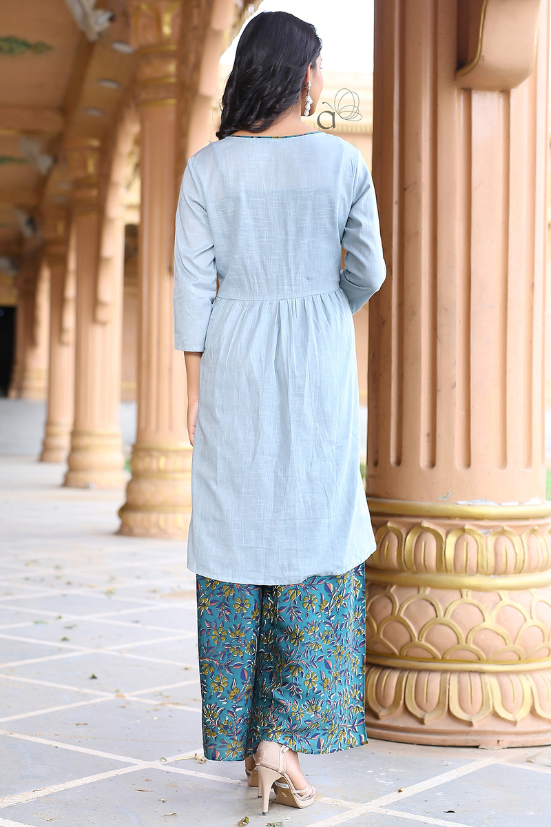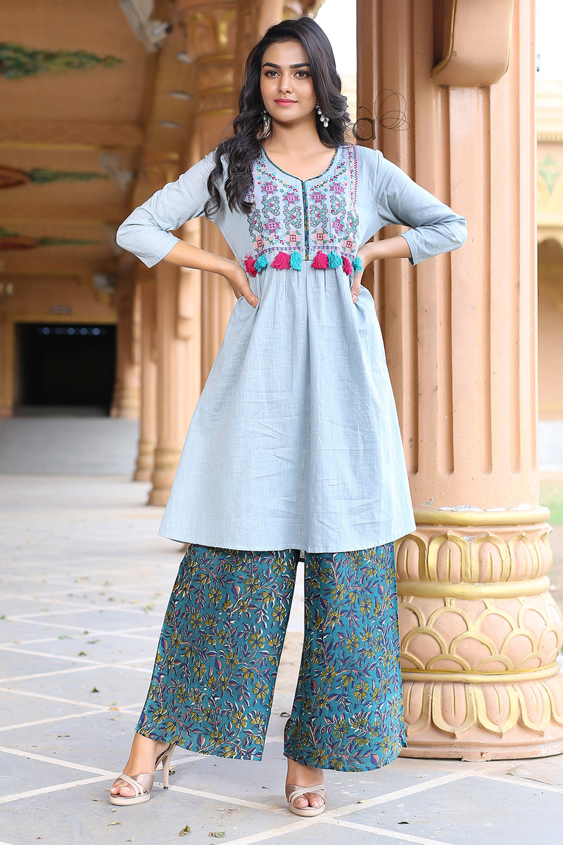 Rayon Embroidery Straight Kurti with Palazzo